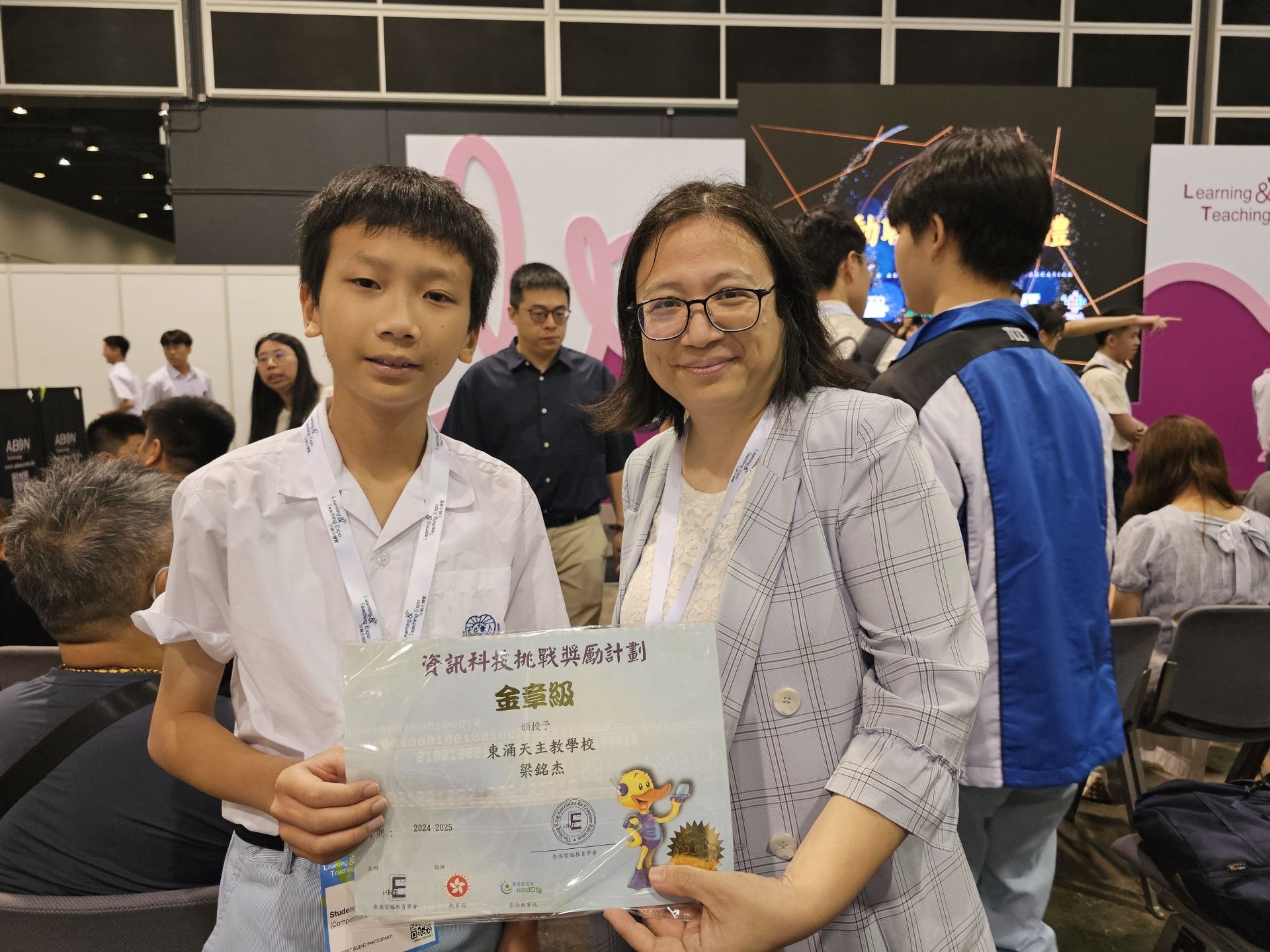 本校學生在香港電腦教育學會2024-2025 「資訊科技挑戰獎勵計劃」獲得佳績。本校小六樂班梁銘杰同學獲得金章,一名小六及一名小五學生獲得銀章,二十七名小四至小六學生獲得銅章。