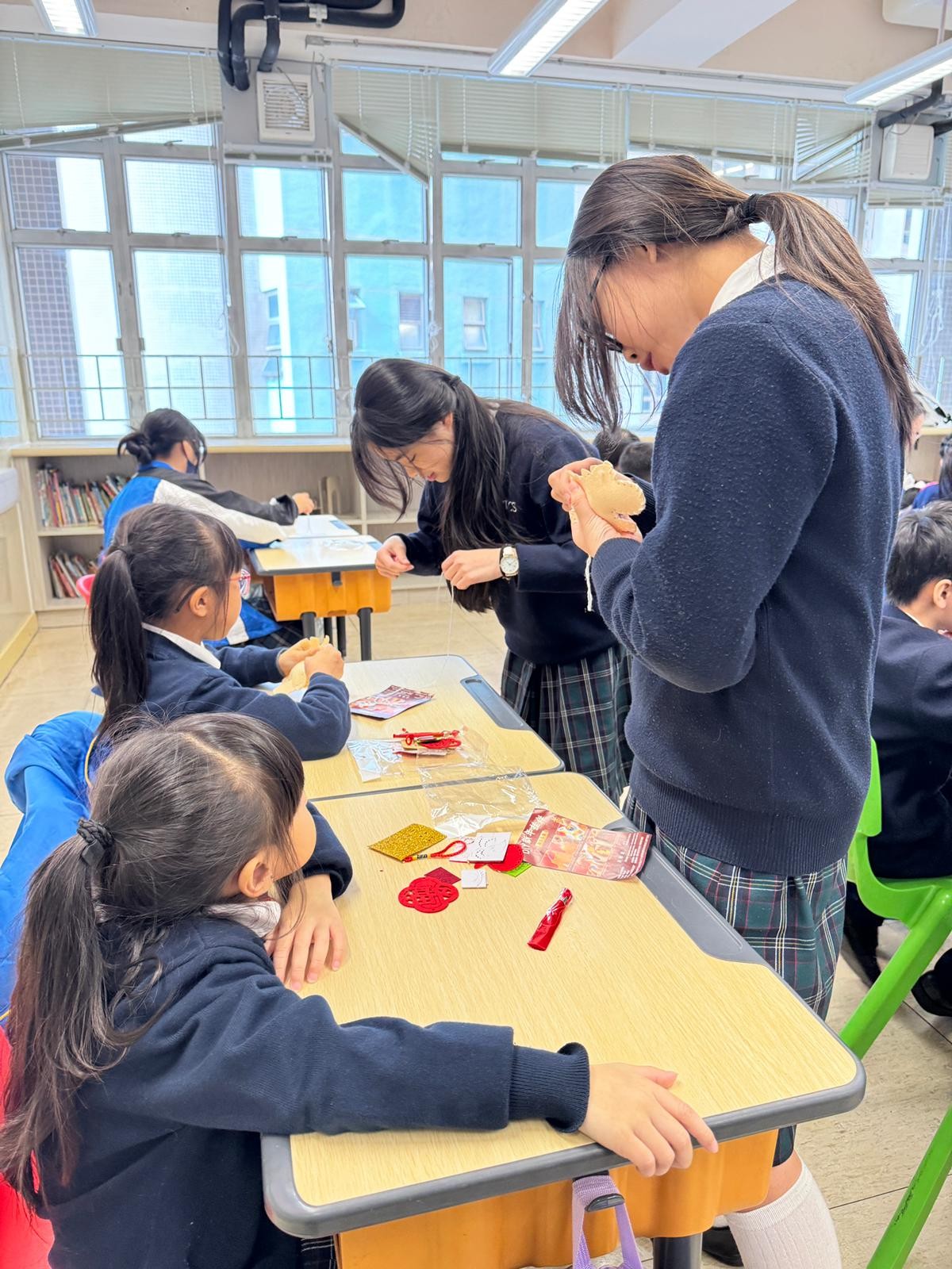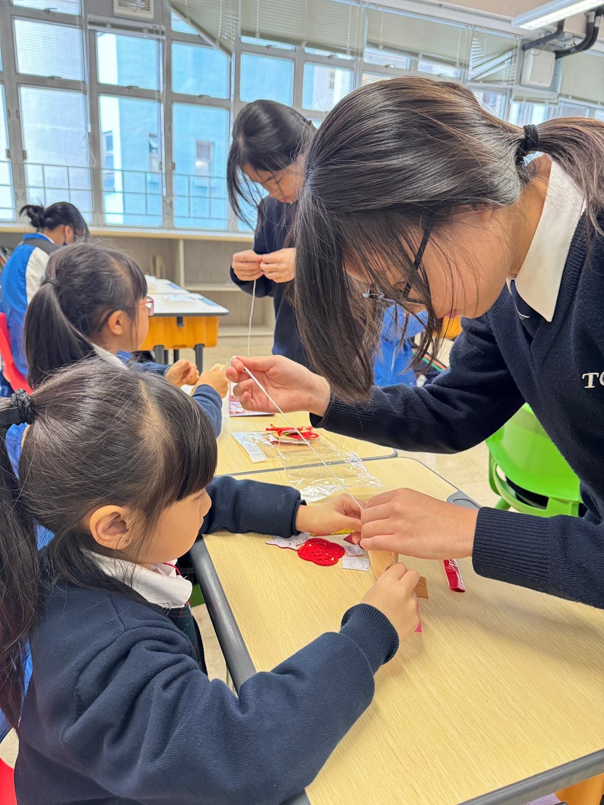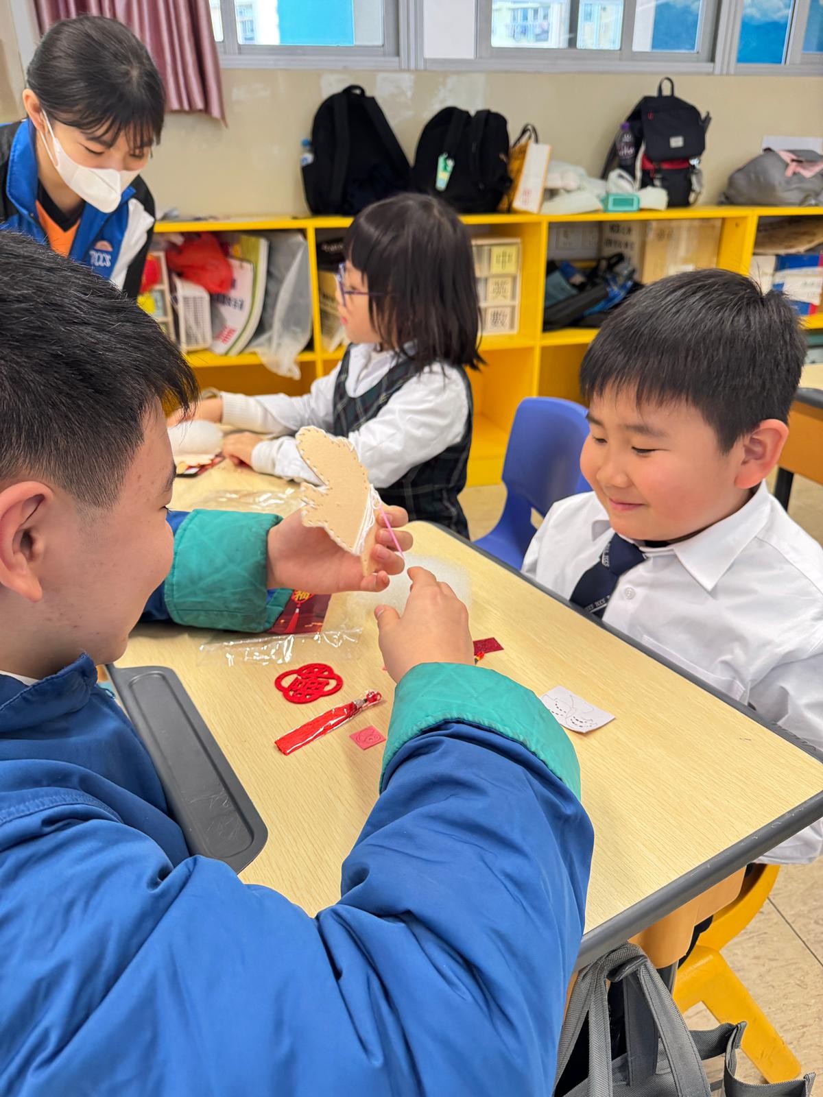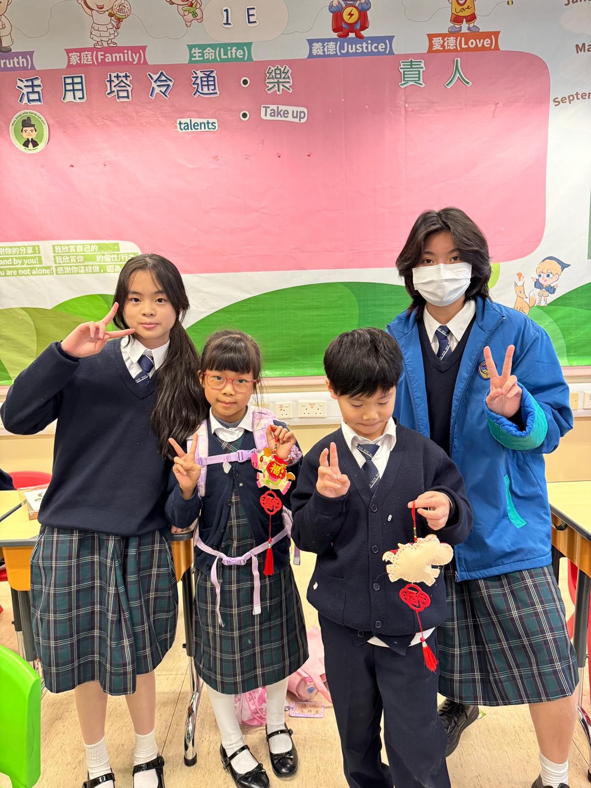 由中學部的師兄師姐們教授低小同學仔製作農曆新年小手工