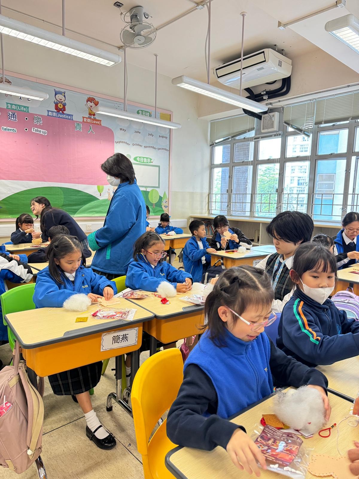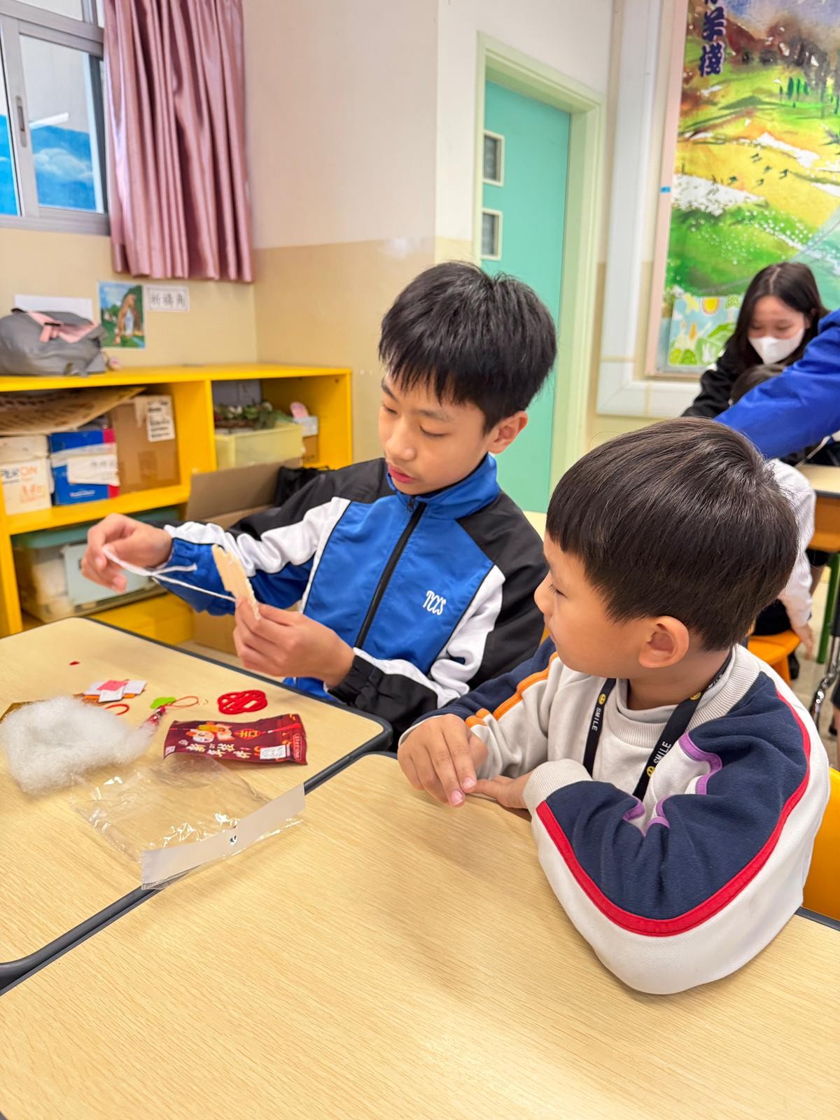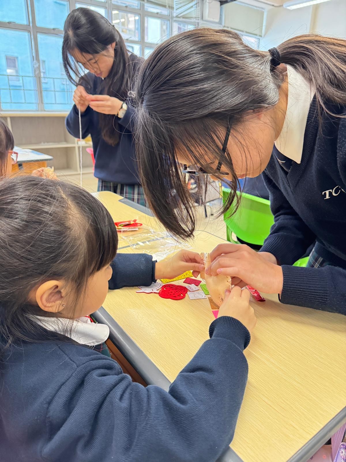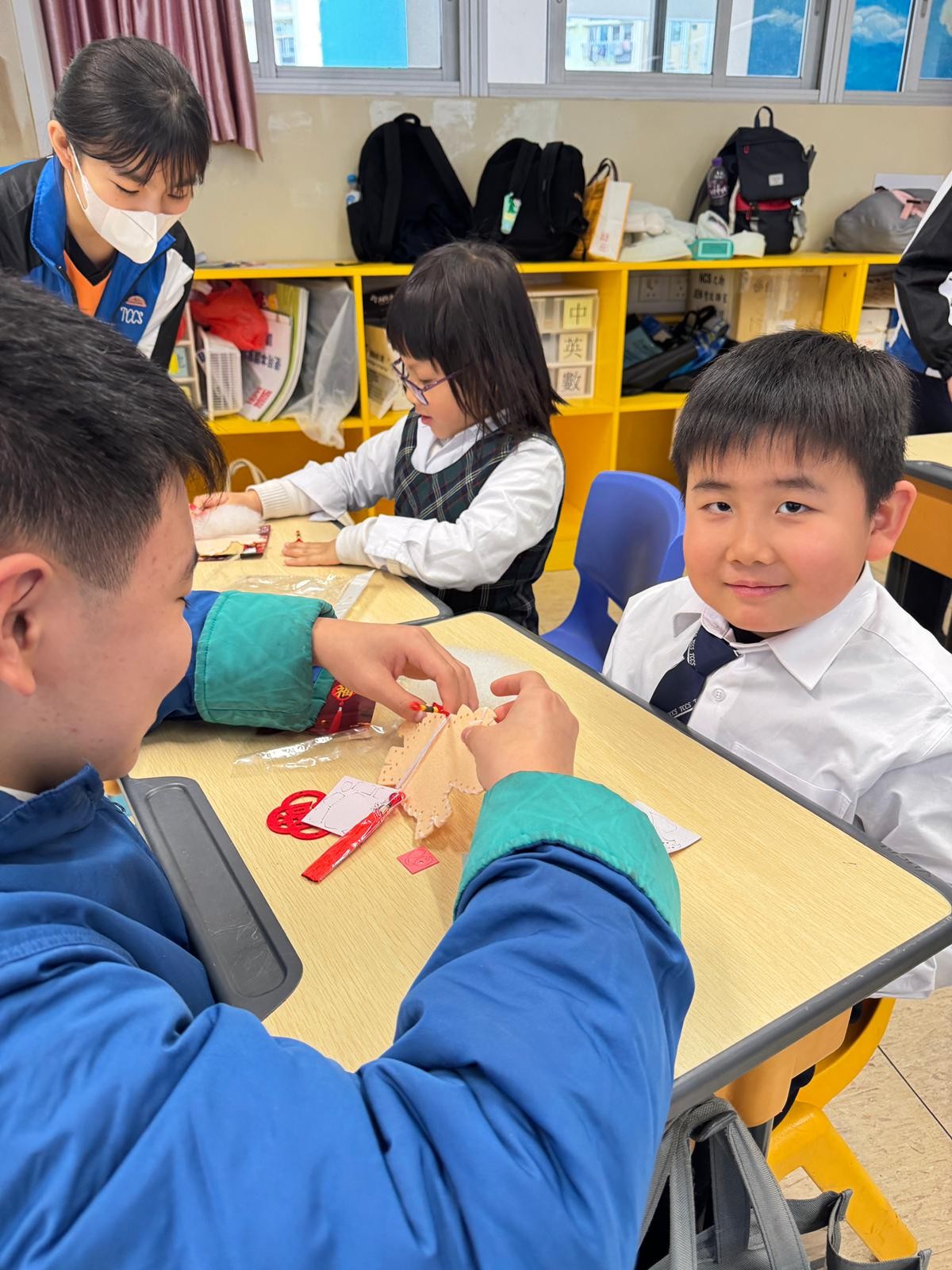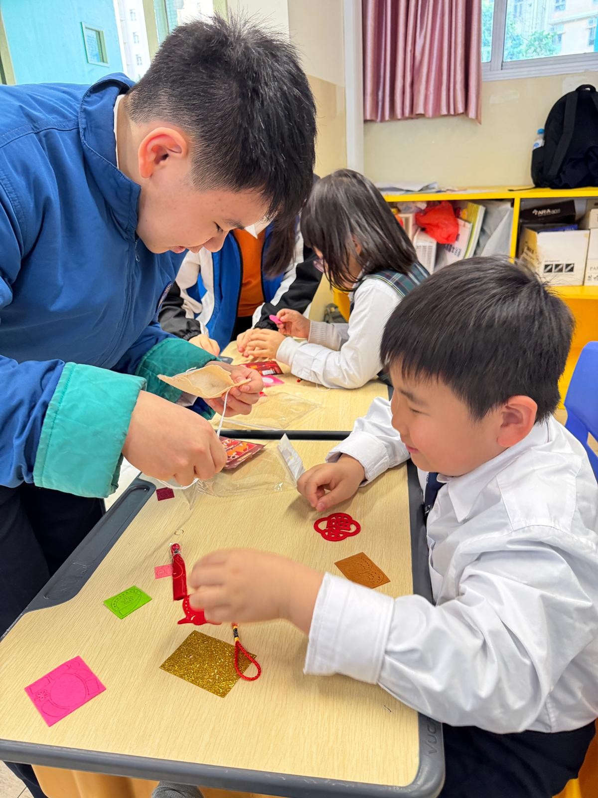 由中學部的師兄師姐們教授低小同學仔製作農曆新年小手工