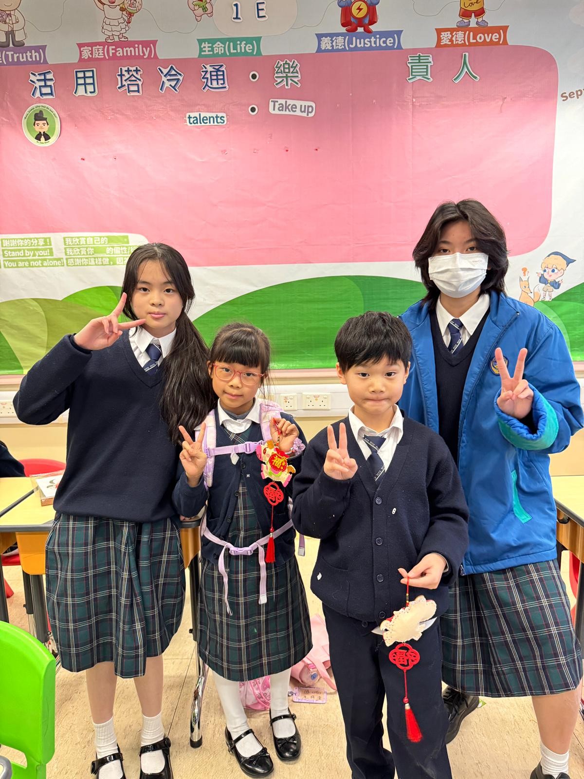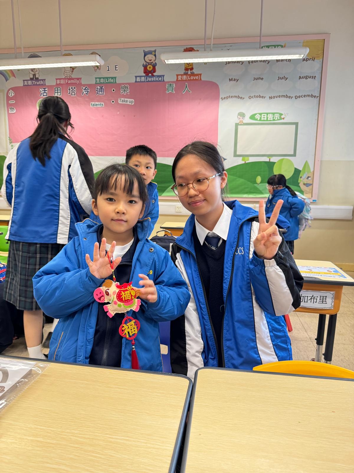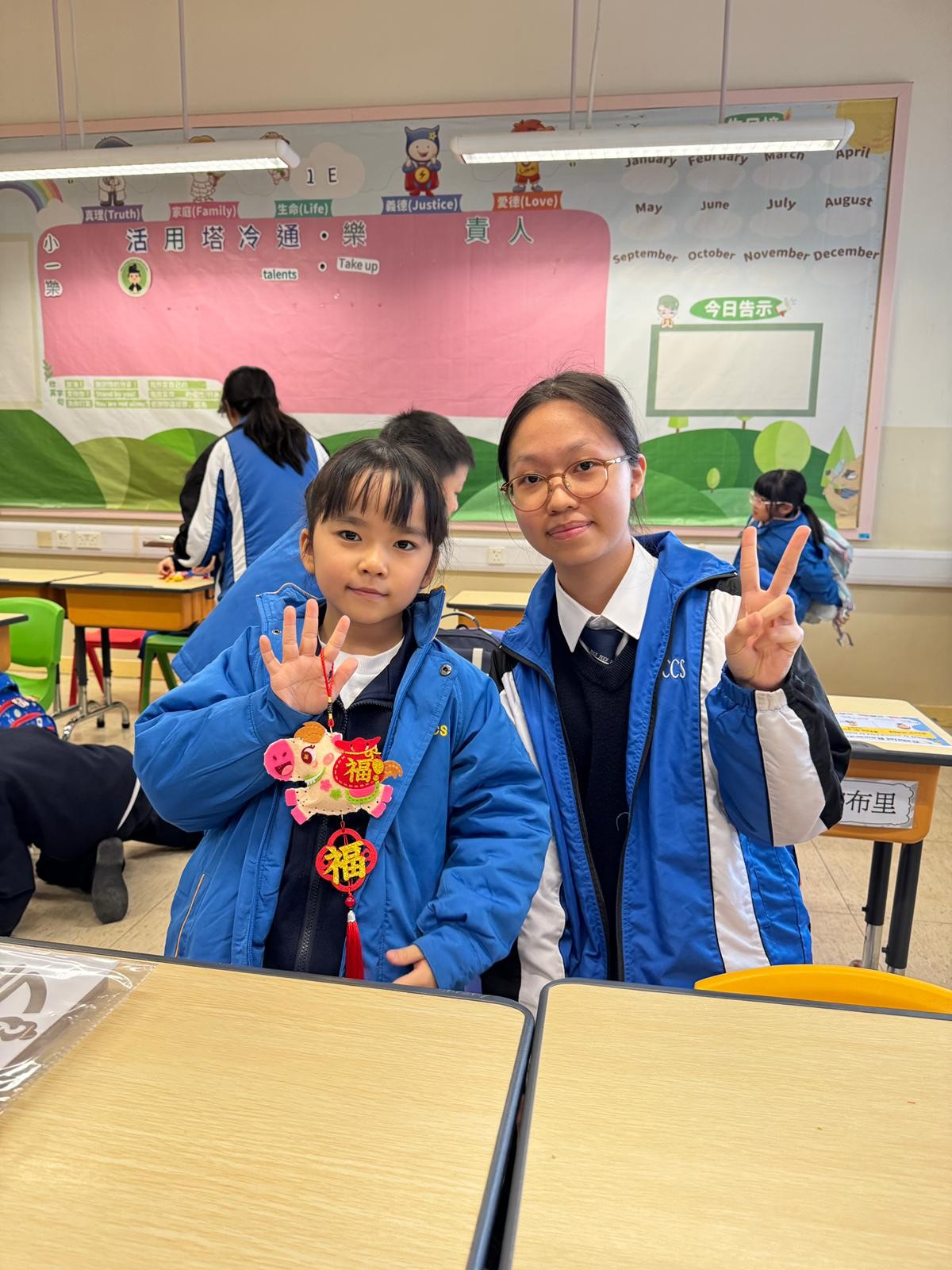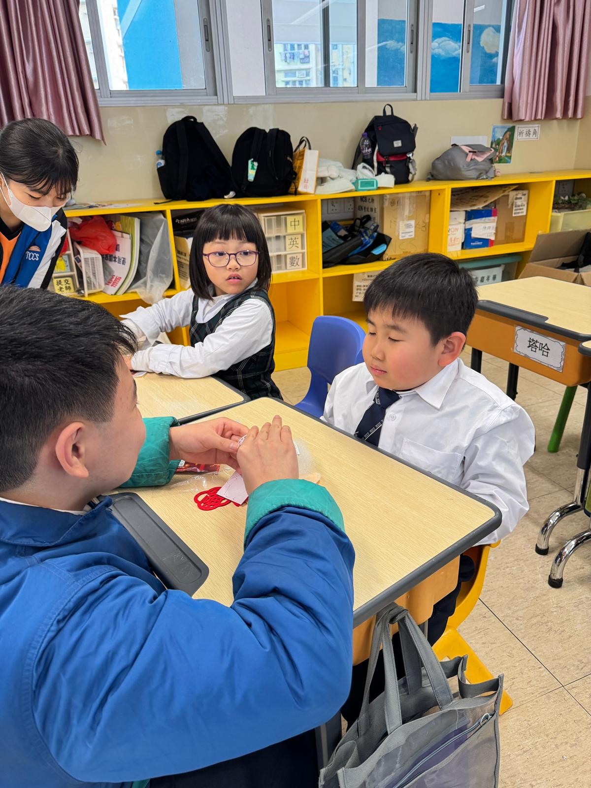 由中學部的師兄師姐們教授低小同學仔製作農曆新年小手工